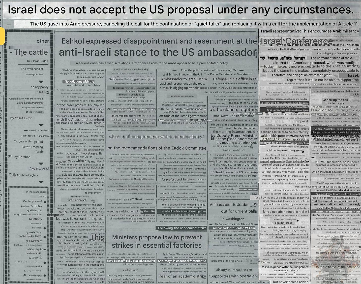 The front page of Davar (the Histadrut’s flagship Hebrew daily) on November 20, 1963 captured Eshkol’s defiance in blunt Hebrew: